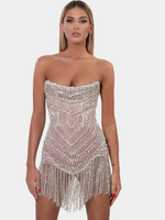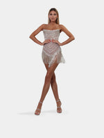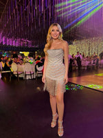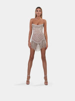 - Rochie Albina Dyla scurta argintie cu franjuri
